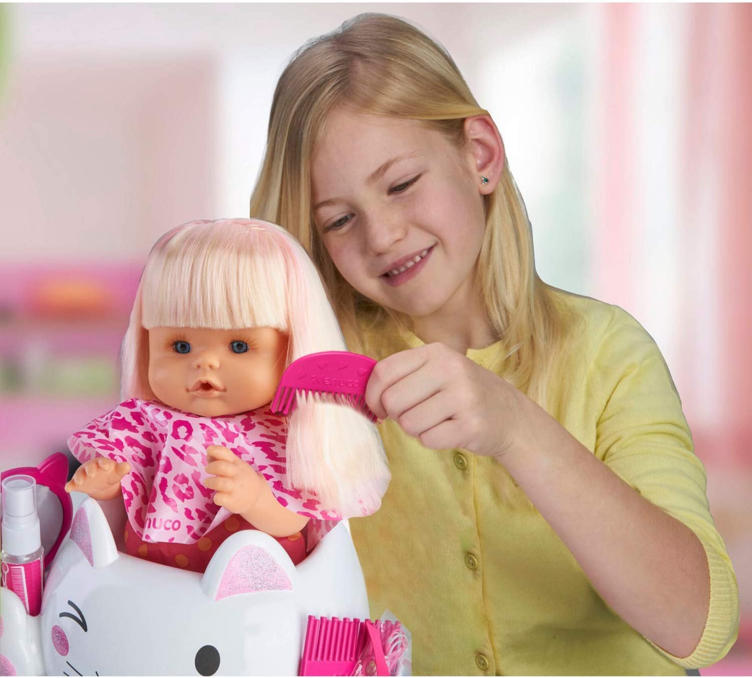 - Nenuco Glitter Hairdresser Baby Doll provides the most incredible hairstyling experience!