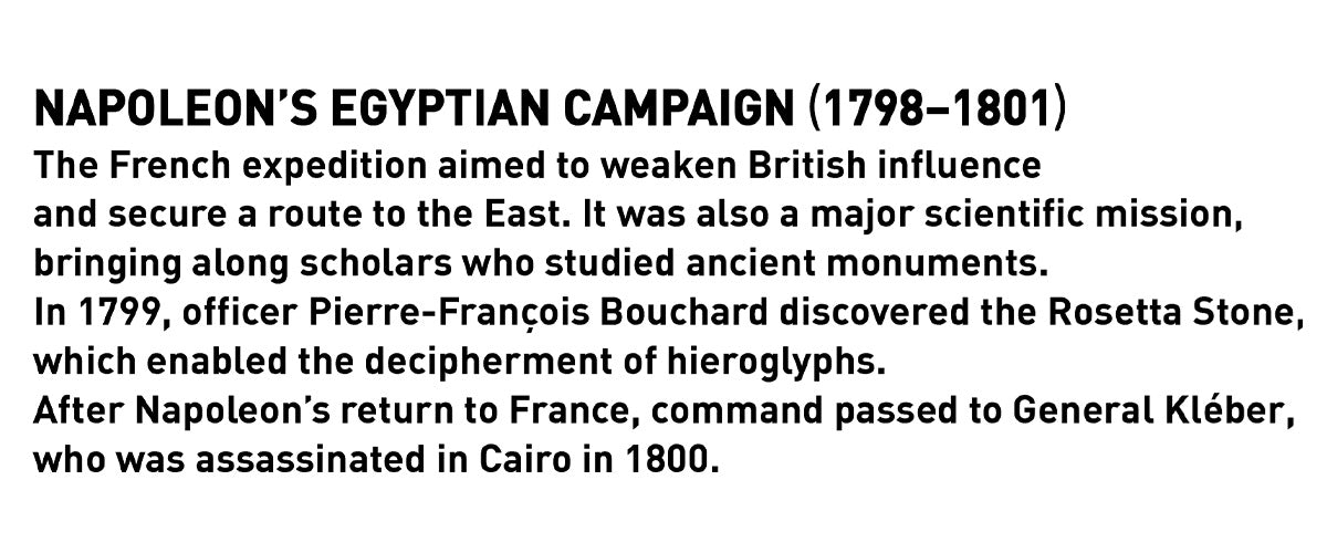 Explore Napoleon's most exotic campaign with this 243-piece COBI set recreating the 1798-1801 Egyptian expedition. Build a detailed Nile Valley diorama featuring three historical figures—General Kléber, Lieutenant Bouchard, and a Mamluk warrior—plus a replica of the legendary Rosetta Stone with authentic trilingual inscriptions. Over 20 centimeters of landscape detail includes a date palm, desert terrain, and decorative plaque. Crafted with durable printed elements and no stickers, this collector's piece blends military history with archaeological discovery. Perfect for history enthusiasts aged 6 and up seeking a unique addition to their Napoleonic Wars collection.