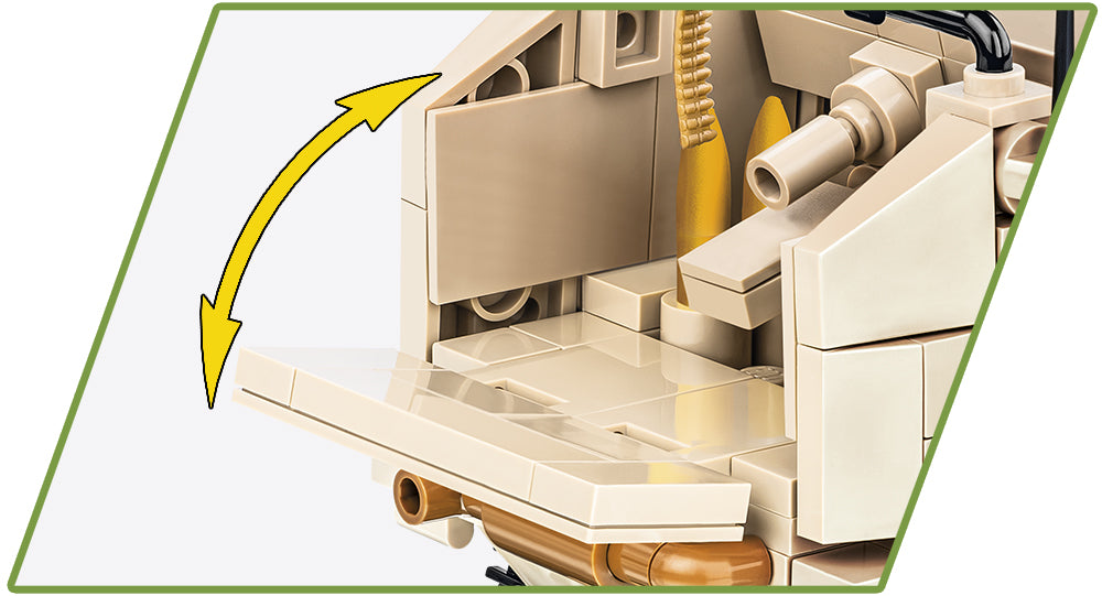 The Marder III tank destroyer fought on many fronts of World War II. Until the introduction of the 88mm guns, it was a very dangerous anti-tank weapon. Design of the Sd.Kfz. 138 Marder III Ausf. M was based on the chassis of the Panzer 38(t) Ausf. M with the engine placed in the middle of the vehicle. The armament was a German 75mm cannon with a supply of 27 rounds. The vehicle did not have a permanently installed machine gun. The MG 34 or MG 42 rifle was carried in the crew compartment as optional personal armament. The "M" version, like other Marder variants, did not have armor covering the crew compartment from above. Instead, there was a closure of the rear part of the crew compartment. In the years 1943-1944, about 975 units of this Marder III variant were produced. The full name of the vehicle was Sd.Kfz.138, Panzerjäger 38(t) mit 7.5cm PaK40/3 Ausf. M. MARDER III Ausf. M was developed in a 1:35 scale to match the figures and consists of 367 building blocks. The use of the latest elements from the COBI catalog allowed faithful reproduction of the characteristic shapes of the original vehicle. The model's functionalities include working caterpillar traction, rotating wheels, a place for a figure in the fighting compartment, a movable cannon and a machine gun mounted on a rail. All graphic elements are high-quality prints. The figure shows a German tank destroyer commander in a characteristic uniform. The set comes with a plate with the name of the set printed on it. Our Historical Collection in 1:35 scale isn’t complete without this set! Build history, piece by piece, with COBI!