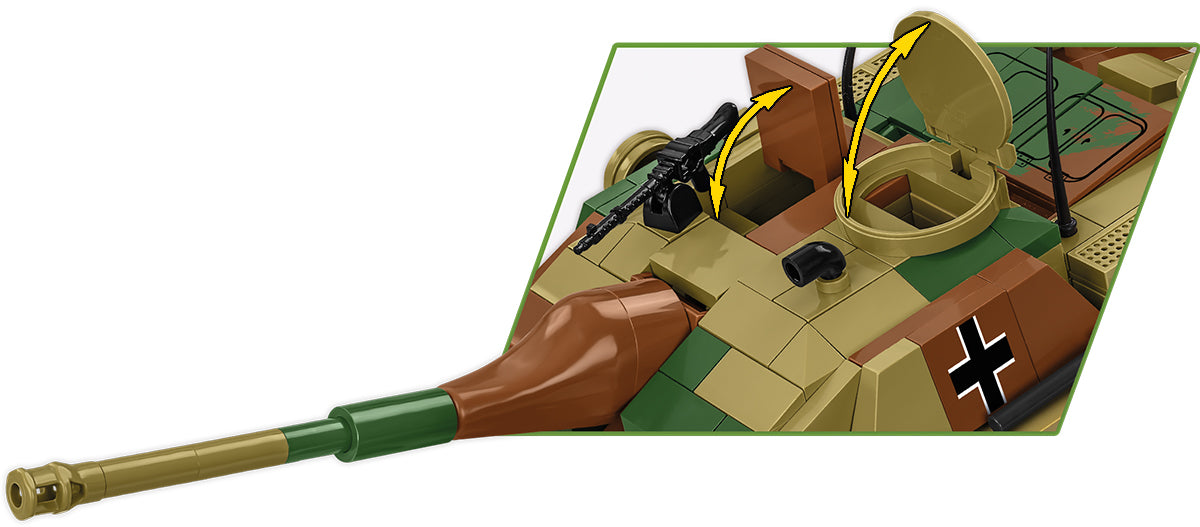 This set, which we are extremely proud of, carries a lot of exciting history and hard work in its design and inspiration. There is only one STUG III Ausf. G in Poland in perfect condition and ready to drive! This vehicle was returned to a perfect condition by a team of history promoters from the TANK HUNTER TEAM! In consultation with the Tank Hunter team, we have prepared a block version of this great piece of history. The exclusive EXECUTIVE EDITION includes the "schützen" side skirts that you can optionally mount on your model. In the box you will also find two unique figures: Mateusz Deling and Przemek Budzich, the creators of the TANK HUNTER channel. The original vehicle can be admired at the Armored Museum in Kanin. Sturmgeschutz III Ausf. G was developed in 1:35 scale to match the figures and consists of 598 pieces. When built the model is 21cm long. Beautiful camouflage refers to the last years of the war. The model has a service hatch with a block motor and access to the interior. Thanks to the working tracks, you can also move the model! The set uses high-quality durable prints. The set includes a black plate with the name of the vehicle and the bricks necessary to build additional side shields. The set provides an exciting construction and perfectly complements the collection of WWII vehicles released in 1:35 scale. This is another demonstration of the possibilities of high-quality block modeling! Build history, piece by piece, with COBI! Sturmgeschütz III was a German tank destroyer used during World War II. Based on the chassis of the PzKpfw III tank, this assault vehicle was equipped with a massive superstructure and a 75mm gun. The destroyer's task was to support armored forces and infantry by providing fire support on the battlefield. Variant G was produced from the fall of 1942 to 1945, making it one of the most widely used versions of the Sturmgeschütz III. In total, about 7,800 units of this vehicle were produced.