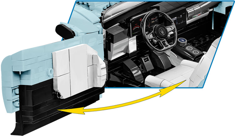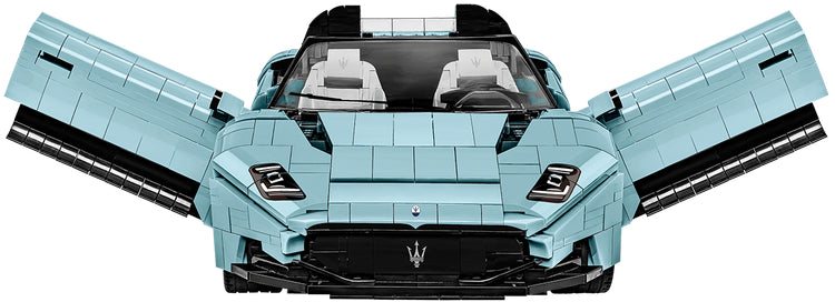 To celebrate the arrival of the new MC20 Cielo, Maserati has prepared a limited edition "PrimaSerie", consisting of only 65 of this supercar! The limited edition cars are distinguished by their unrivaled exterior appearance and unique interior. Particularly noteworthy is the oceanic body color inspired by the sea and the restless energy beneath the waves, captured in the aquamarine paint. The pursuit of aerodynamic perfection has resulted in incredible supercar-like performance! MC20 Cielo accelerates to 100km/h in less than 3 seconds and allows you to comfortably reach speeds of over 320km/h. This unique Spyder is only available to a select few! Fortunately, the collector's edition made of COBI construction blocks expands the group of owners of this elite supercar! The MC20 CIELO was released under the original license of the Italian sports car manufacturer Maserati. The block model, developed in a sensational scale of 1:12, is 39cm long and consists of 2,312 elements. A working, foldable roof, doors that open upwards, steerable wheels that can be turned using a working steering system and elements specially designed for this model are just some of the features of this set. Using numerous prints and carefully designed elements, such important details and the interior have been accurately reproduced. The collector's edition Executive Edition is distinguished by an aquamarine body color, as close as possible to the limited Maserati Spyder! The set is complemented by a stylish brick display stand, an important element of which is a plate containing the name of the car, the scale of the model and the Maserati logo. Get a wonderful COBI model that cannot be ignored! Now this modern supercar can be yours. Thanks to clear and intuitive instructions, construction is simple and won't be a problem, even for slightly less advanced builders. The brilliantly designed car will certainly delight fans of modern motoring. The sporty shape and display stand highlight the model, which can become a decoration of your living room, bedroom or office. Change the configuration of your COBI supercar thanks to the foldable roof and steerable wheels, then open the hood to show off the engine and lift the doors up! You will never get bored of this model. Express your passion for automotive technology with COBI construction blocks!