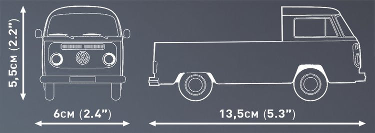 Volkswagen T2a Pritschenwagen - Travel in time with the COBI Model! Travel back to the 60s and feel the spirit of the automotive revolution with the iconic Volkswagen T2a! This model, also known as the Transporter, won the hearts of drivers around the world, becoming a symbol of reliability, versatility and modernity. It debuted in 1967 as the successor to the legendary T1, introducing innovations that changed the face of transport. Practicality in every detail: The T2a Pritschenwagen version, the box version, was designed for use in transport and various other industries. Instead of a traditional passenger body it offered an open cargo box, making it an ideal work vehicle. The model's popularity among small businesses, craftsmen and law enforcement made it one of the most commonly used cars in the 1960s and 1970s. The T2a also stood out for its ease of modification, which made it even more versatile. Build a motoring legend: The 1:35 scale set allows for a faithful reconstruction of the legendary Transporter, and the included figure adds realism, facilitates play and creates an attractive diorama. Great quality and satisfaction: The set contains 151 precise elements, which make every part of the model carefully reproduced. Rubber wheels and indelible prints on the car and figure guarantee very good quality, and the intuitive instructions make the assembly process easy and satisfying. Perfect for both beginners and experienced modelers! A souvenir of an automotive icon: The COBI Volkswagen T2a Pritschenwagen model is a great souvenir for any automotive fan. Although it was not as recognizable as its passenger version, it still remains one of the symbols of the automotive revolution of the 1960s and 1970s. Create your own collection of iconic Volkswagens from COBI: Don't stop at one! Discover other models from the Volkswagen series from COBI and create your own collection of iconic cars. From the Transporter to classic vehicles, each model will allow you to build your own automotive legend.