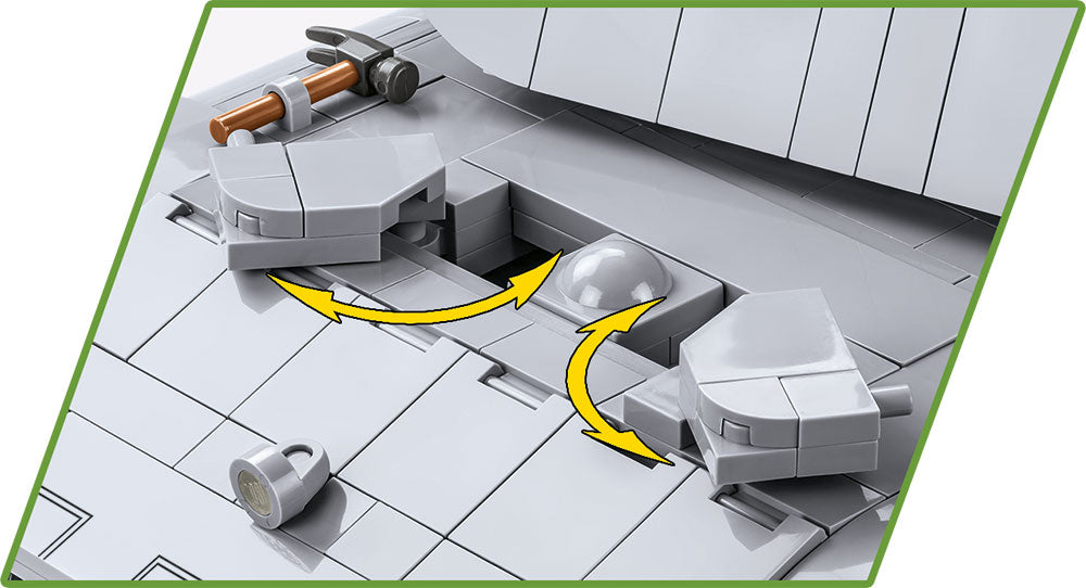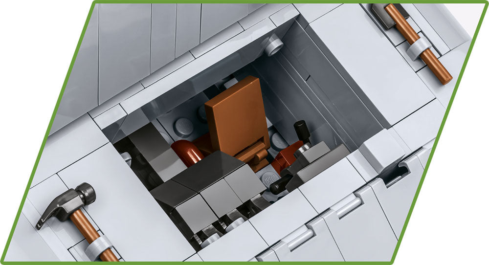 The PANZERKAMPFWAGEN E-100 was developed in the large 1:28 scale using 1511 elements and measures 37 cm in length. The large size of the model made it possible to design the interior of the turret and the vehicle. The model offers access to the service hatch, under which there is a removable engine. Additional functionalities include a rotating turret, movable cannon, access to hatches for the crew and working tracks. The set also includes a very interesting figure of a tanker with a print on the back. Such a huge model will provide many hours of exciting construction and will become a dominant exhibit in your collection! Build history, piece by piece, with COBI! The mighty Panzerkampfwagen E-100 is a mysterious German prototype super-heavy tank developed in the final stages of World War II. The vehicle was designed as part of the Entwicklungsserie program, aimed at developing a series of unique armored vehicles of various types. Work started in 1943 but was discontinued by 1944. The Henschel company tried to continue its work to a limited extent. It became possible to produce the hull on which, according to plans from 1943, a modified Maus tank turret was to be mounted. Further modifications were also considered to allow the installation of even larger caliber guns. Captured by the Allies, the hull was sent to Great Britain for testing in 1945, and later scrapped. There is only a modest photographic and drawing documentation of the E-100 tank. Due to its uniqueness and size, the vehicle is very popular and often appears not only in historical literature, but also in games and documentaries.