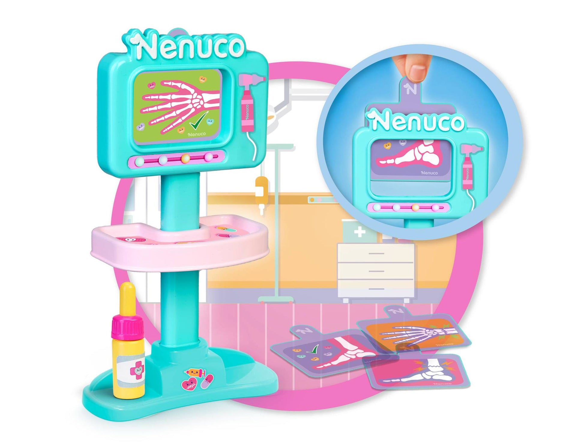 Oh no, Nenuco has had an accident and needs to go to see the doctor, it's an emergency! Thankfully this playset has everything she needs to feel better. Use the X-ray machine and various accessories to cure Nenuco. She comes with a wheelchair, dressed in a pink hospital gown with a cast on her arm and foot.